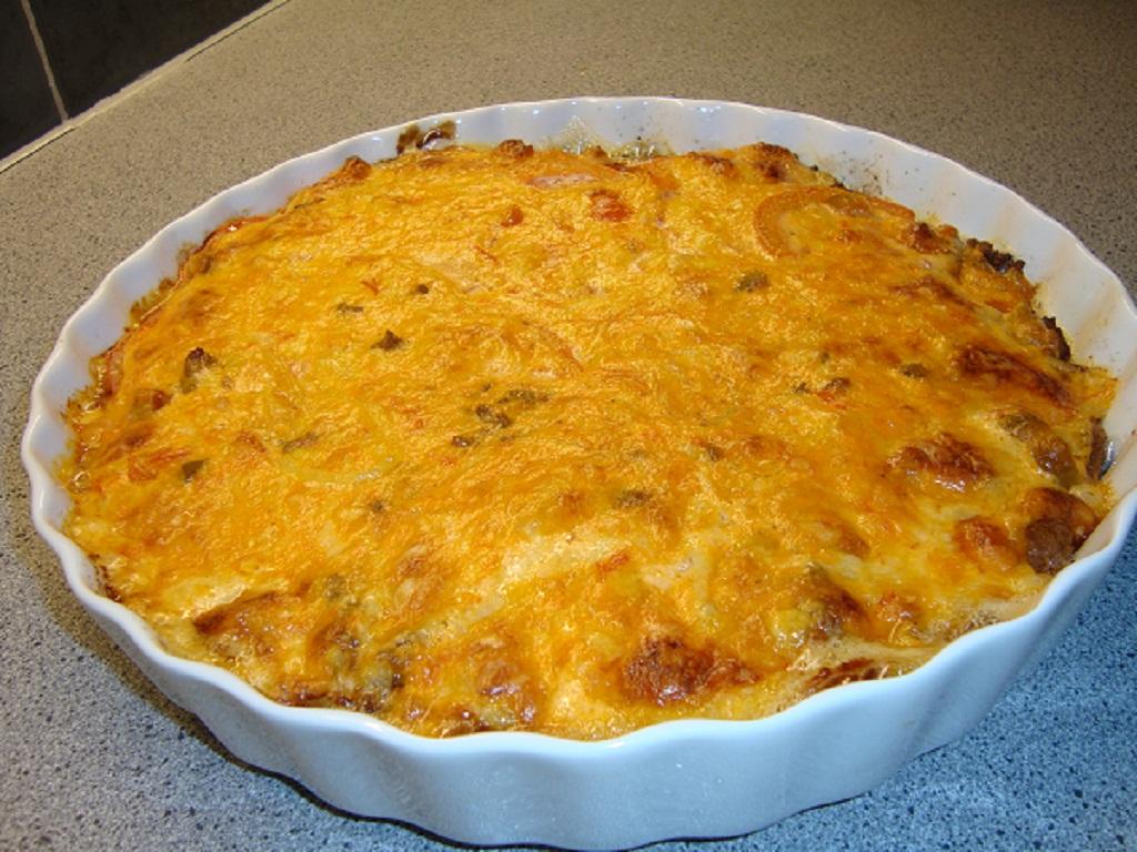 … blev dagens mat idag. Jag har gjort det en gång tidigare och gillat det jag smakat :) Så nu får ni det tipset av mig! Man kan inte förvänta sig att det smakar som en vanlig paj med frasig deg utan det är mer som en omelettbotten, men jätte gott!