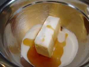 Blanda vetemjöl, bikarbonat, vaniljsocker och malen ingefära och vänd ner det i smeten.