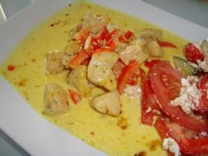 Här om dagen åts denna kycklingrätt ovan som jag nästan hade glömt bort att man kunde laga.. Kom inte ihåg vart jag hittade receptet på den sist, men som tur är hade Ida det och det var även där vi åt den första gången också, mycket gott! Äts med fördel till typ ris, men eftersom vi försöker undvika så mycket kolhydrater som möjligt så blev det en liten tomat och gurksallad istället, går lika bra det med!