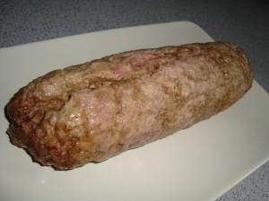 Blanda ihop blandfärsen med kryddorna och fonden. Tillsätt sedan potatismjölet och blanda runt. Forma smeten till en rulle (var noga med att knåda smeten ordentligt så att inga ”luckor” uppstår).