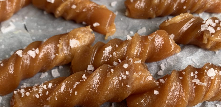 Visst förknippas smaken av hemkokt kola med julen? Och så är det förmodligen, inget konstigt med det. Däremot tycker jag att det alltid är en bra idé att göra hemkokt kola precis när som helst. Speciellt den här underbart sötsalta kolan med mitt hemgjorda brynta smör. Såå gott. Det går inte att få nog!