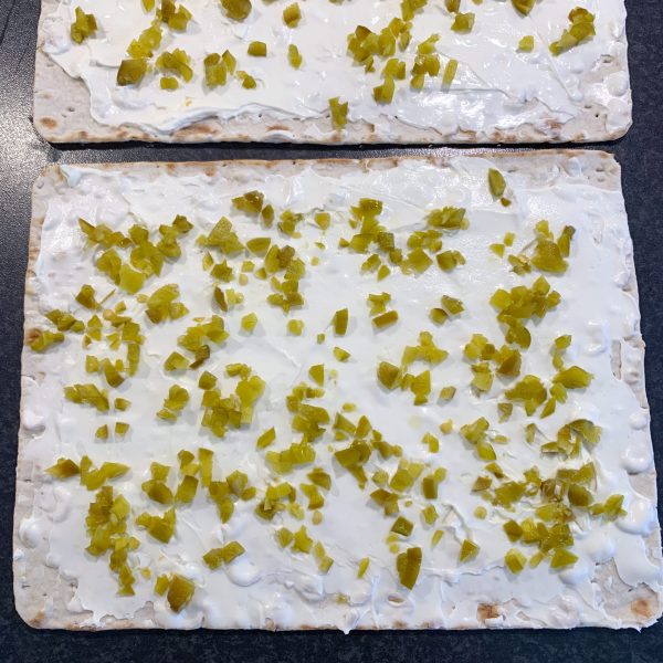 4. Strössla över den hackade jalapenon och strö över finriven goudaost.
