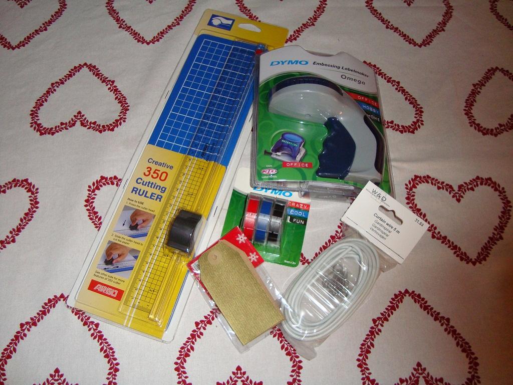 Dymo med tillhörande ”band”, skärmaskin, tags och så en gardinspiral.. hoppsan så det kan gå..