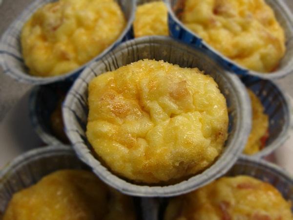 Sätt ugnen på 175 grader. Finhacka baconen. Stek i pannan tills de är knapriga (låt ligga kvar i pannan med fettet). Knäck äggen i en skål och tillsätt grädden och den rivna osten. Rör ihop och tillsätt sedan bacon. Häll smeten i muffinsformar upp till ca 3/4. Använd antingen som jag en muffinsplåt eller så tar du dubbla muffinsformar för att de ska bli mer stabila och inte rinna ut. Grädda i ugnen i ca 25 min eller tills den fått fin färg. Muffinsen förvaras sedan i kylskåpet. Bara att ta fram och äta som den är eller så värma lite i micron.