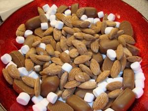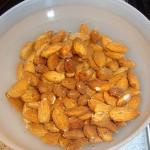 I det här receptet är det salta mandlar istället för jordnötter som det är i orginalreceptet, och även här har jag då inte köpt färdiga salta mandlar i butiken utan jag har saltat och rostat dom själv, vilket är superlätt!