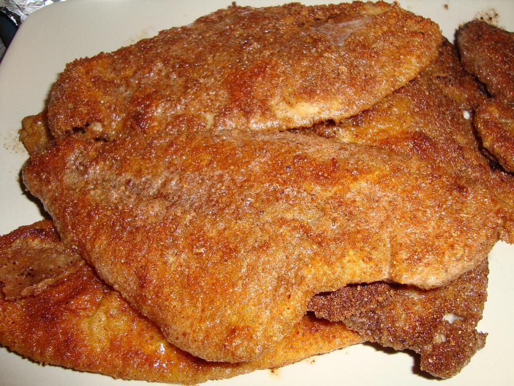 Häll upp mjölet i en djup tallrik. Kläck äggen och vispa upp dem med lite vatten och häll över i en annan djup tallrik. Sikta ströbrödet i en tredje tallrik/bunke.