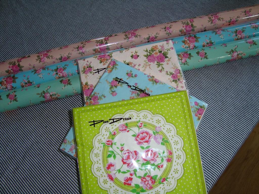 Fick även med mig lite nya servetter och presentpapper som jag är såå svag för! Älskar blommor och gammalt, men även vitt och stilrent, rosa blommor med vitt och det nya blått och vitt.. jaa you name it.. har många olika stilar, hihi:)