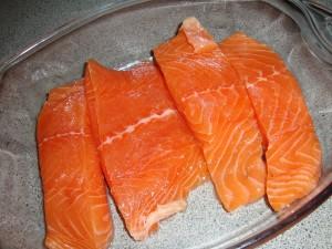 Sätt ugnen på 225°C. Salta laxen och lägg den i en ugnssäker form.