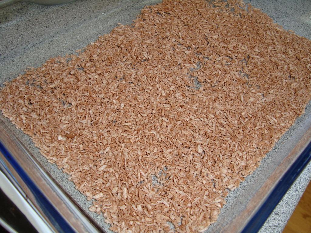 9. Strö ut en del av det som ett täcke i en rektangulär form ca 20×30 cm.