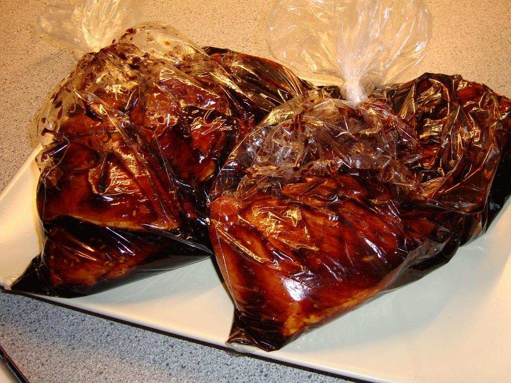 Blanda samman olja, balsamvinäger, soja och sweetchilisåsen i en bunke, pressa sedan ner vitlöken och krydda med lite salt och peppar. Lägg köttet i en påse och häll över marinaden. Slut påsen ordentligt och blanda ordentligt, lägg sedan i kylen någon timme innan grillningen och vänd då och då på marinaden så att allt kött får det goda på sig.