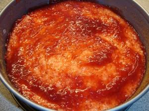 Och här hade jag inte tillräckligt med jordgubbar så jag använde mig utav jordgubbssylt istället på mittersta botten.