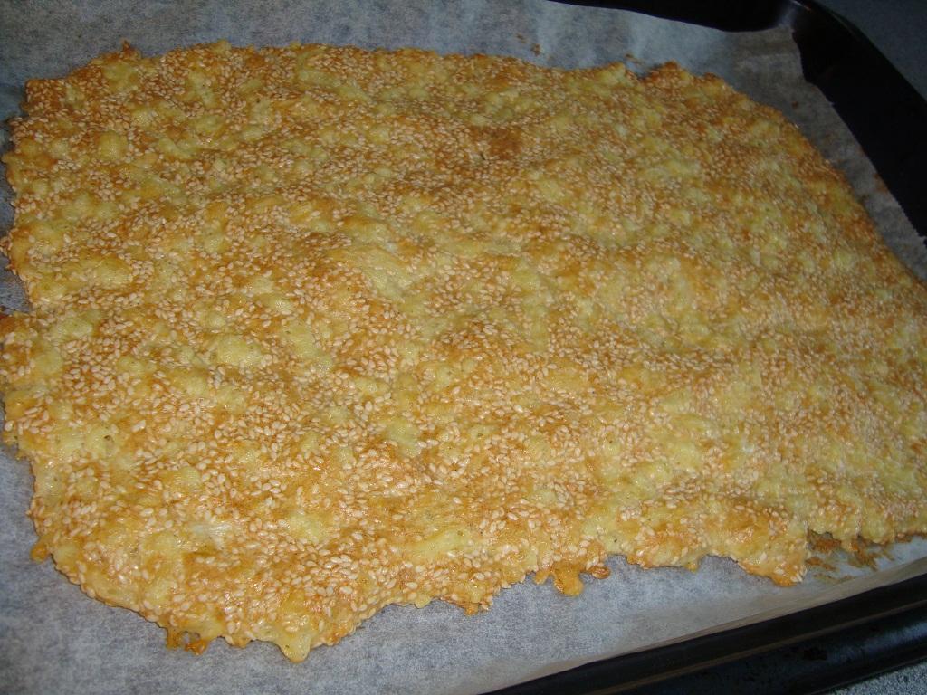 Låt sesambrödet svalna och skär sedan till i lagom stora rutor, jag fick ut 9 st.