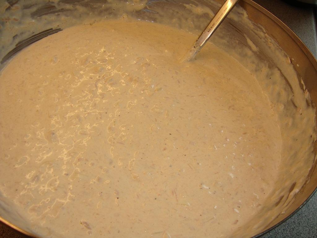 Gör sedan röran, strimla purjolöken ganska så smått, blanda creme fraich och majonäs i en bunke och tillsätt purjolöken och tonfisken. Smaka av med lite citronpeppar.