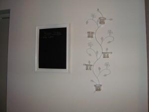 Tyckte det skulle bli lite tomt på väggen där bredvid griffeltavlan så jag införskaffade mig lite mer ställen där jag kan tända ljus på! :)