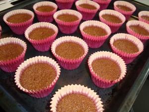 Grädda mitt i ugnen i 200 grader ca 16 min (känn med sticka så det inte fastnar någon smet på)