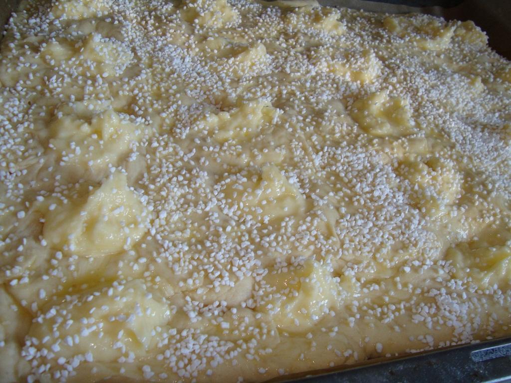 Pensla ytan med uppvispat ägg och strö över pärlsocker.