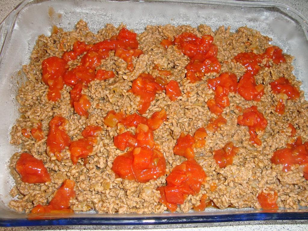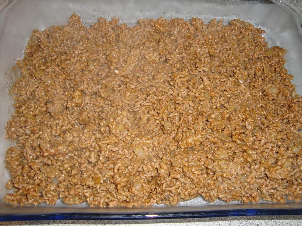 Lägg köttfärsen i botten på en form.