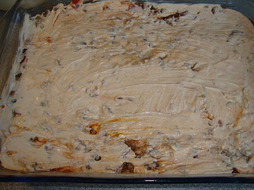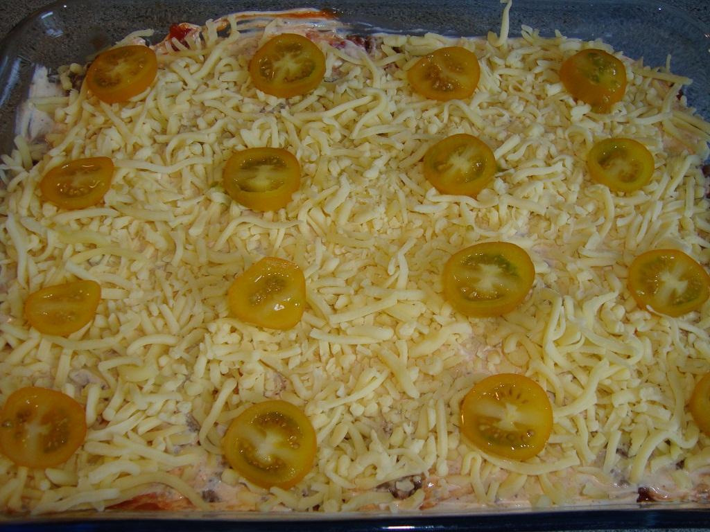 Strö den rivna osten ovanpå blandningen så att den täcks.