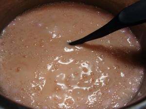 Blanda alla ingredienser utom den vita chokladen i en kastrull.