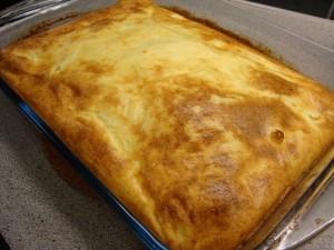 Jag brukar vanligtvis göra ugnspannkaka enligt det här receptet som jag visat här tidigare, men jag ville testa något nytt och hittade då istället ett recept på 56kilo:s blogg som är gjort utav kesoplättsreceptet istället och det smakar i princip detsamma men jag tyckte ändå att det här receptet var bättre. Dessutom är det färre ägg än förra men mer keso i denna, vilket inte gör något alls.