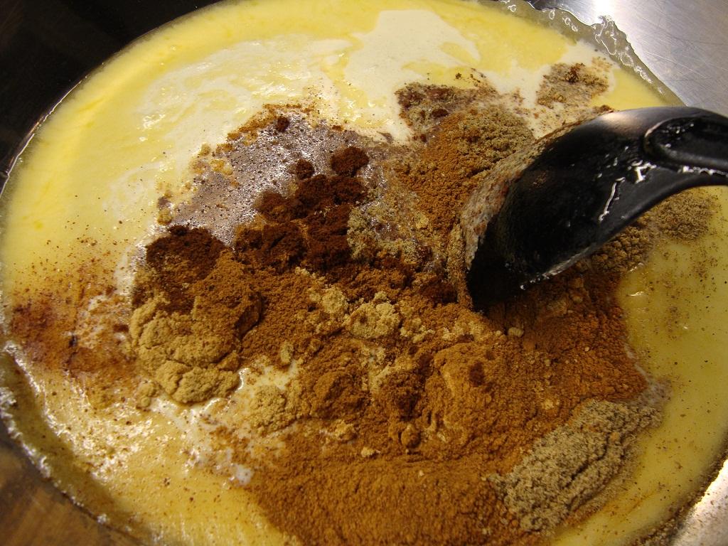 Lägg smör, sirap och socker i en kastrull. Värm tills allt har smält.