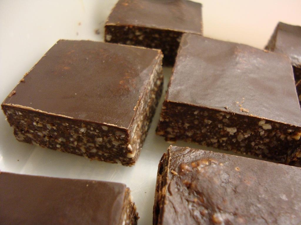 Kärna ur dadlarna och häll alla ingredienser i mixer och mixa sedan allt till en slät smet, eventuellt kan det behövas tillsättas lite vatten. Tryck ut smeten på ett bakplåtspapper. Vik pappret över degen och platta ut till en jämnhög rektangulär kaka.