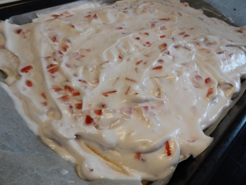 9. Blanda i vinbären (jordgubbarna) i marängsmeten.