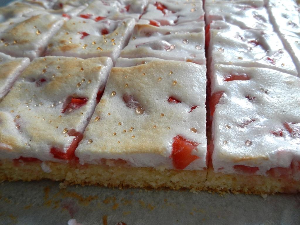 Den här kakan är egentligen en rödvinbärskaka med marängtäcke, men eftersom jag inte hade några vinbär hemma så valde jag att använda jordgubbar istället, därav att jag döpte om kakan till jordgubbskaka (logiskt, ja vet)