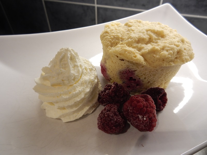 LCHF Muggkaka – Mug cake med mazarin och hallon