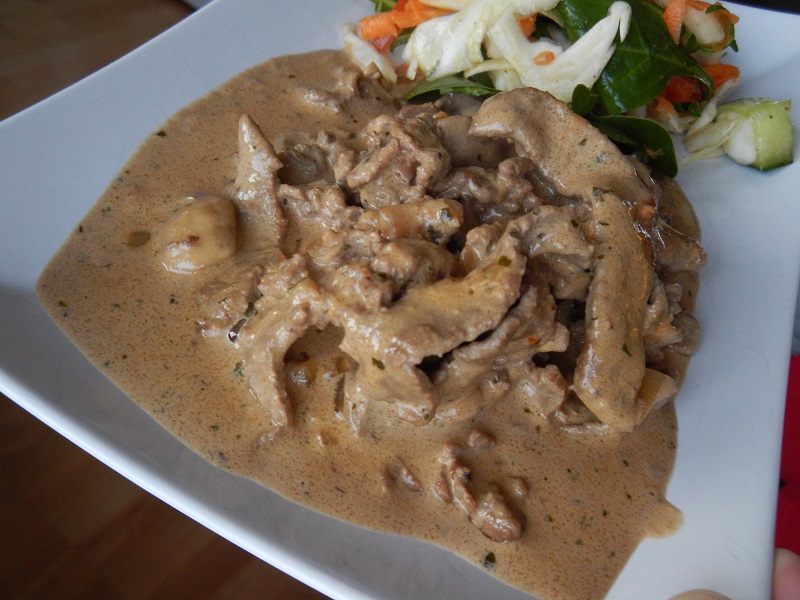 Jag serverade den här krämiga lövbiffsgrytan med en fräsch sallad, så gott!!