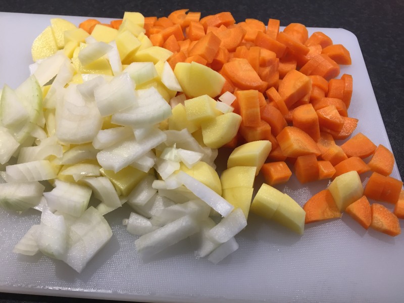- 300 gram torsk och lax (finns färdigskurna tärningar i frysdisken, men går lika bra med att skära egna kuber)