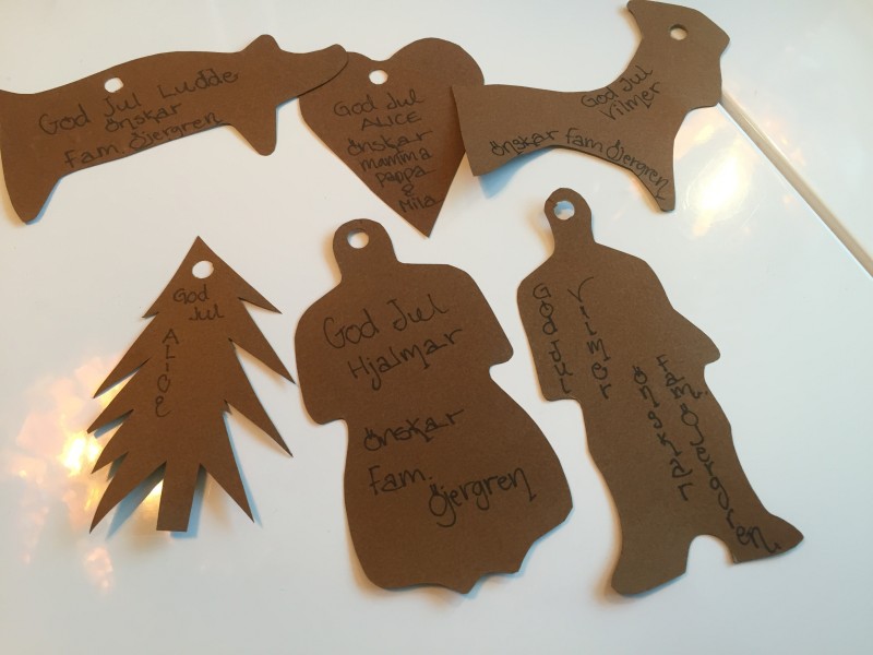 Sen är det bara att sätta i ett snöre och skriva något vacker ? så är det bara att sätta på julklapparna sedan.