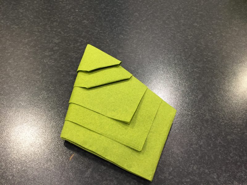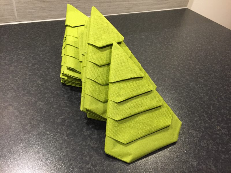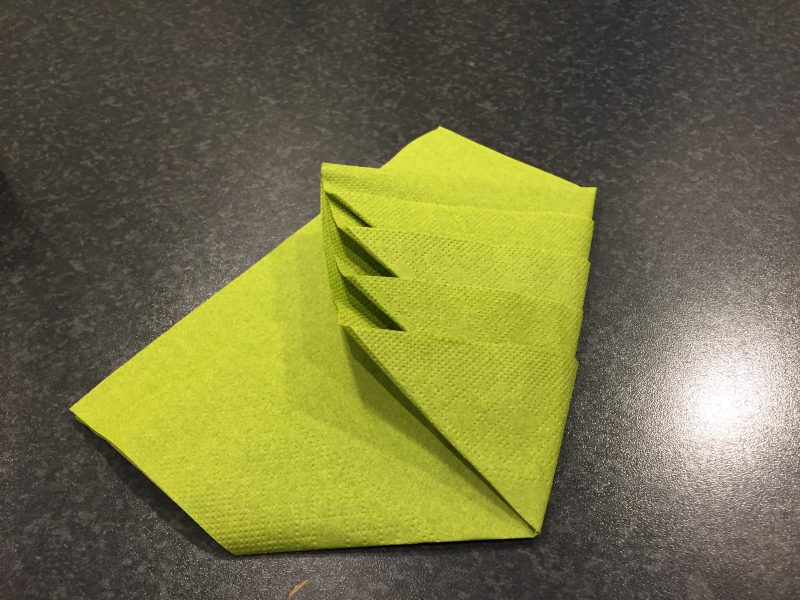 1. Börja med en vanlig servett. Vik upp varje ark för sig mot mitten med lite avstånd mellan varje.