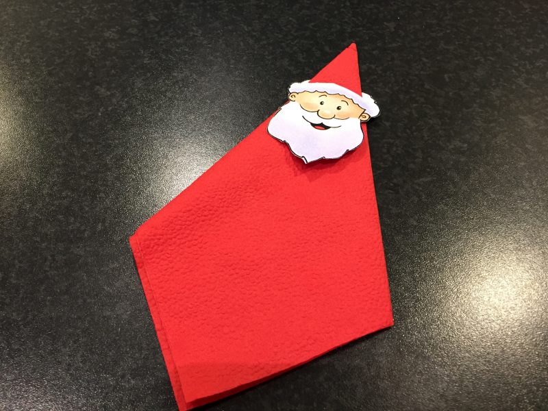 Jag tänkte visa hur jag gjorde min servettgransvikning och en bild på tomteservetten och hoppas du förstår – om inte, googla på gran av servett så finns det videobeskrivningar tillgängliga.