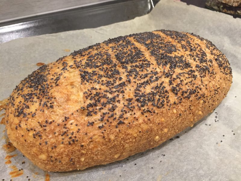 - Pensla den med vispat ägg och strö vallmofrön över.