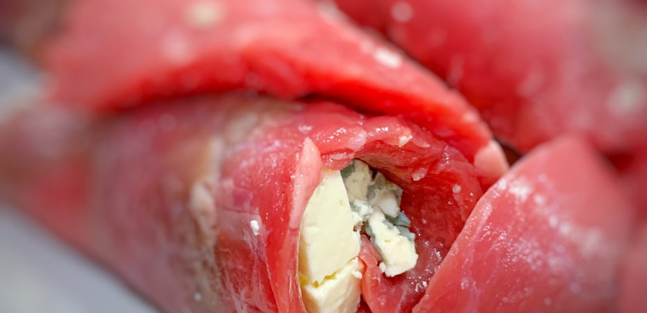 1. Skär upp osten i skivor och fyll varje lövbiff och rulla ihop. Fäst med tandpetare.