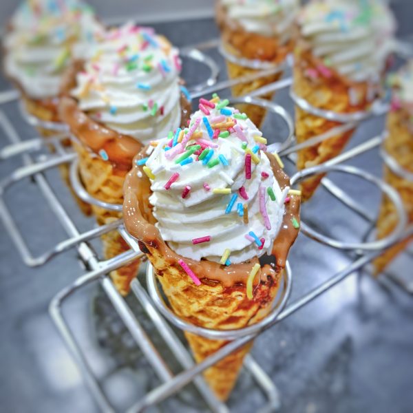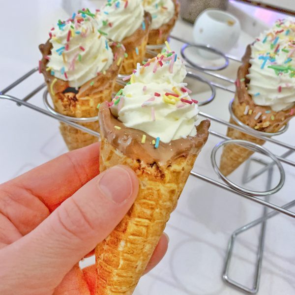 Tänk dig en krämig kladdkaka, en frasig våffelstrut och en len och fluffig grädde, tillsammans med en touch av mjölkchoklad. Hur gott låter det? I mina öron låter det som en underbar kombo. Den här blev förra veckans mello-efterrätt, uppskattadad av både barn och vuxna. Perfekt att baka och en kul idé att servera i en glasstrut utan själva glassen i. Eller hur?