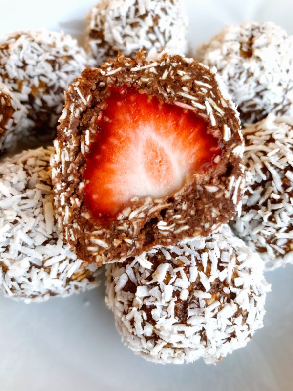 Varför inte uppgradera den här klassiska, enkla och underbara chokladboll med något som också är underbart gott – nämligen jordgubbar. Det gjorde jag till barnens fredagsmys och fredagsgott för någon vecka sedan. OM det var succé? Jajamensan! Inte bara barnen som gillade det såklart… jag också!