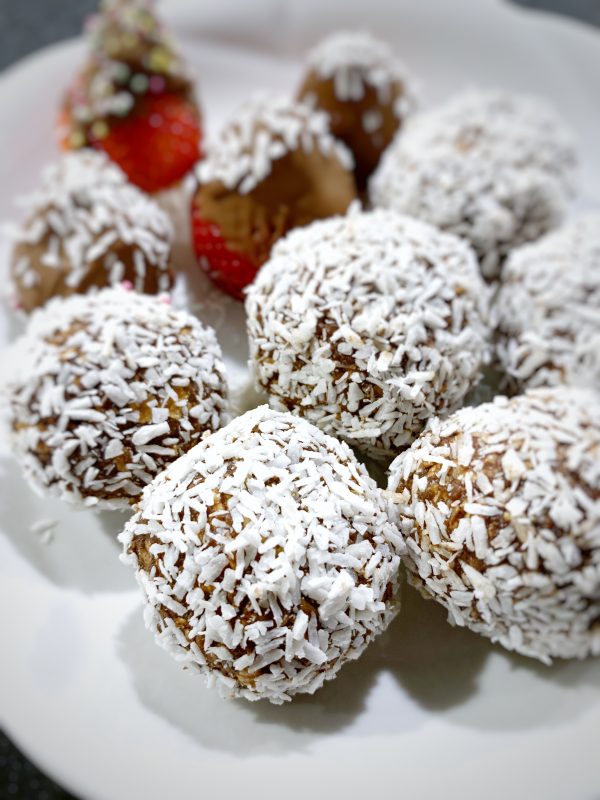 - Rulla försiktigt bollarna jämna och fortsätt rulla dem i kokos.
