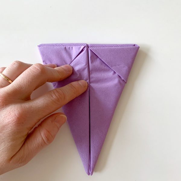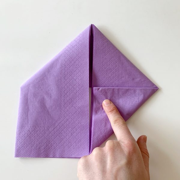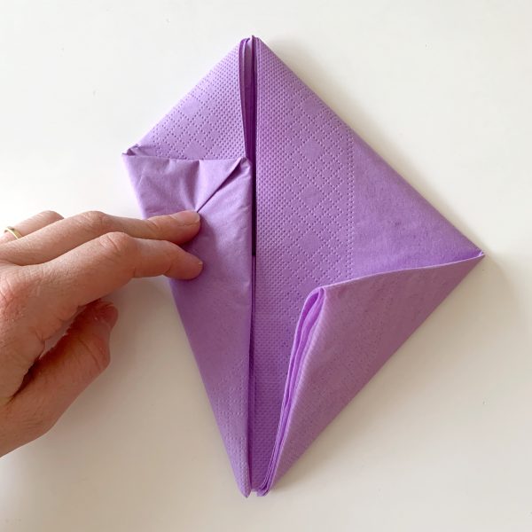 Hitta mitten på servetten och vik ned det högra hörnet.