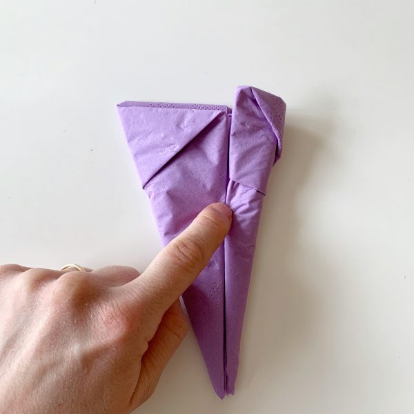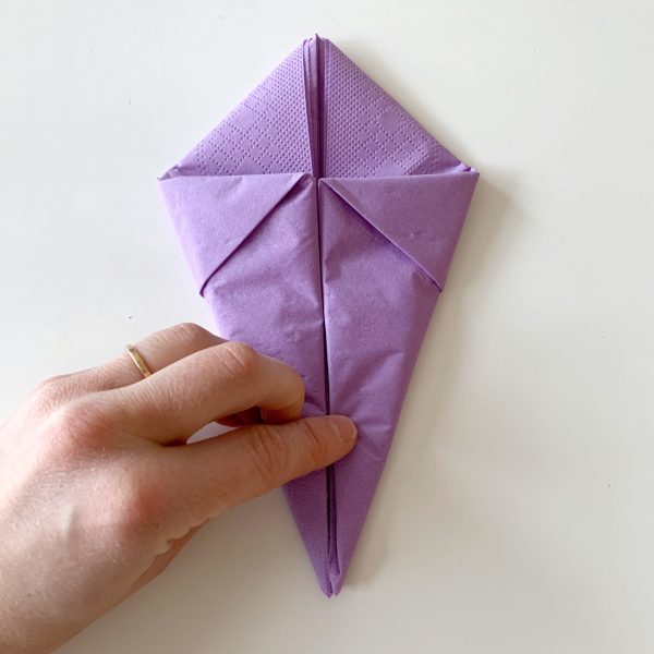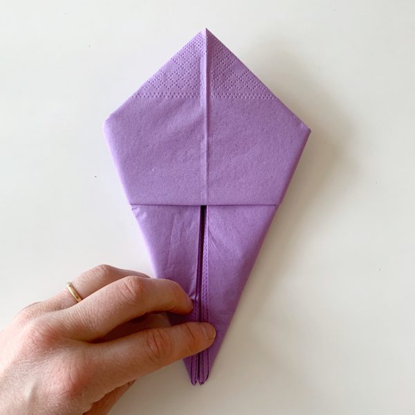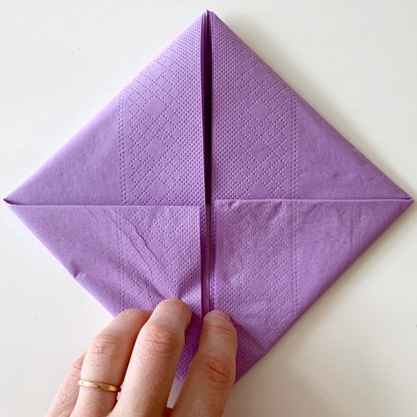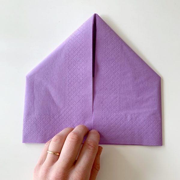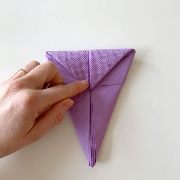 Vik servetten på mitten ännu en gång. Tryck till så att du får ett tydligt veck.