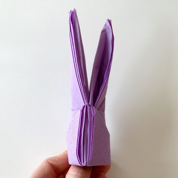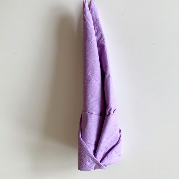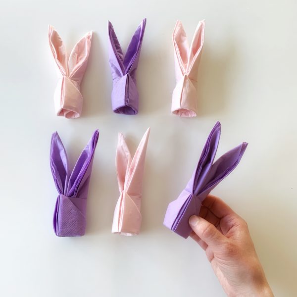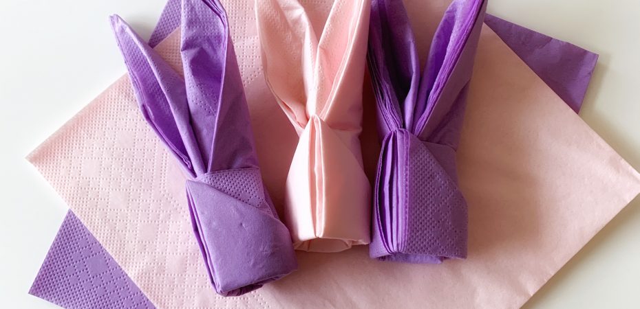 Den här söta servetten vek vi till påskhelgen. Den kan kännas lite trixig till en början att få till, men när du väl gjort en och förstått tillvägagångssättet kommer det gå av bara farten. Varför begränsa sig till påsk, det går lika bra till barnkalaset också.