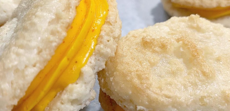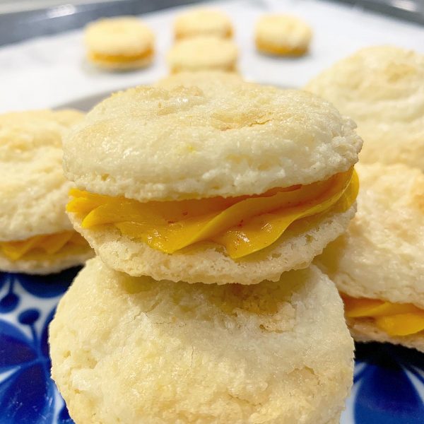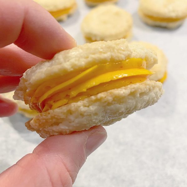 - Spritsa saffranssmörkräm på hälften av kakorna och lägg ihop dem två och två.
