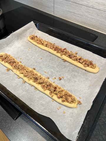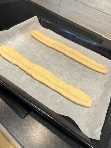 - Dela sen degen i två delar och rulla ut till två längder.