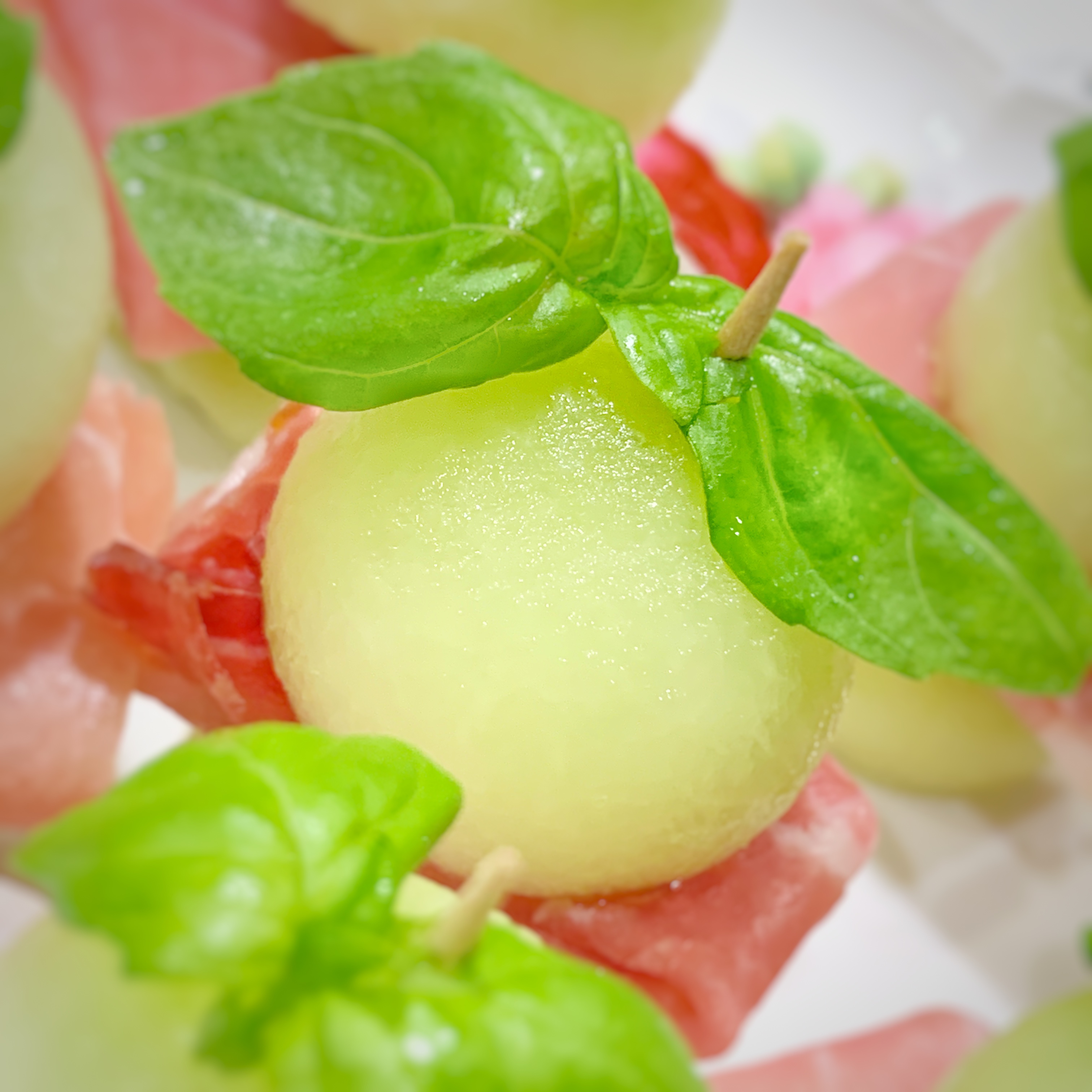 Tilltugg: parmaskinka & melon på tandpetare