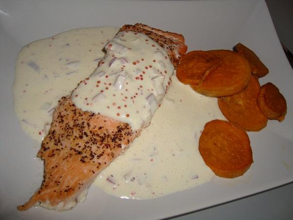 Lax med romsås och ugnsrostad sötpotatis