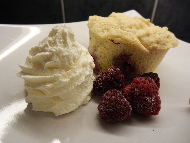 LCHF Muggkaka – Mug cake med mazarin och hallon